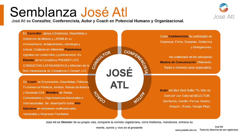 Es Consultor apoya a Empresas, Deportistas y Gobiernos de México y LATAM en su entrenamiento, fortalecimiento, estrategia y cul.tura. Colabora en diferentes Plataformas digitales con contenidos y publicaciones. Es Director de la Consultora PRESENT LIFE CONSULTING LATINOAMERICA y Miembro de la Red Internacional de Consultoría C-Growth LCC.